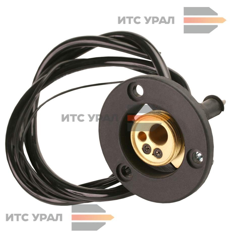 Разъём обеспечивает подачу в горелку сварочной проволоки, газа защитного. На плоскости разъёма находятся два контакта, подключаемых к линиям, ведущим до кнопки включения горелки.