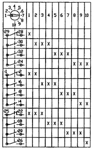 Пакетный переключатель предназначен для коммутации первичной обмотки силового трансформатора. Контакты переключателя работают согласно таблицы, замыкаясь и размыкаясь в заранее заложенном порядке, таким образом выбранное положение переключателя собирает обмотку, что ведёт к изменению коэффициента трансформации силового трансформатора. В конструкции переключателя нет дугогасительных камер, по этой причине недопустима смена положений во время протекания тока (во время сварки). На холостом ходу переключение положений не оказывает негативного влияния на его контакты, по этой причине не нужно выключать сварочный аппарат для поворота ручки переключателя. Переключатель рекомендован к установке сервисным центром ИТС-Урал.