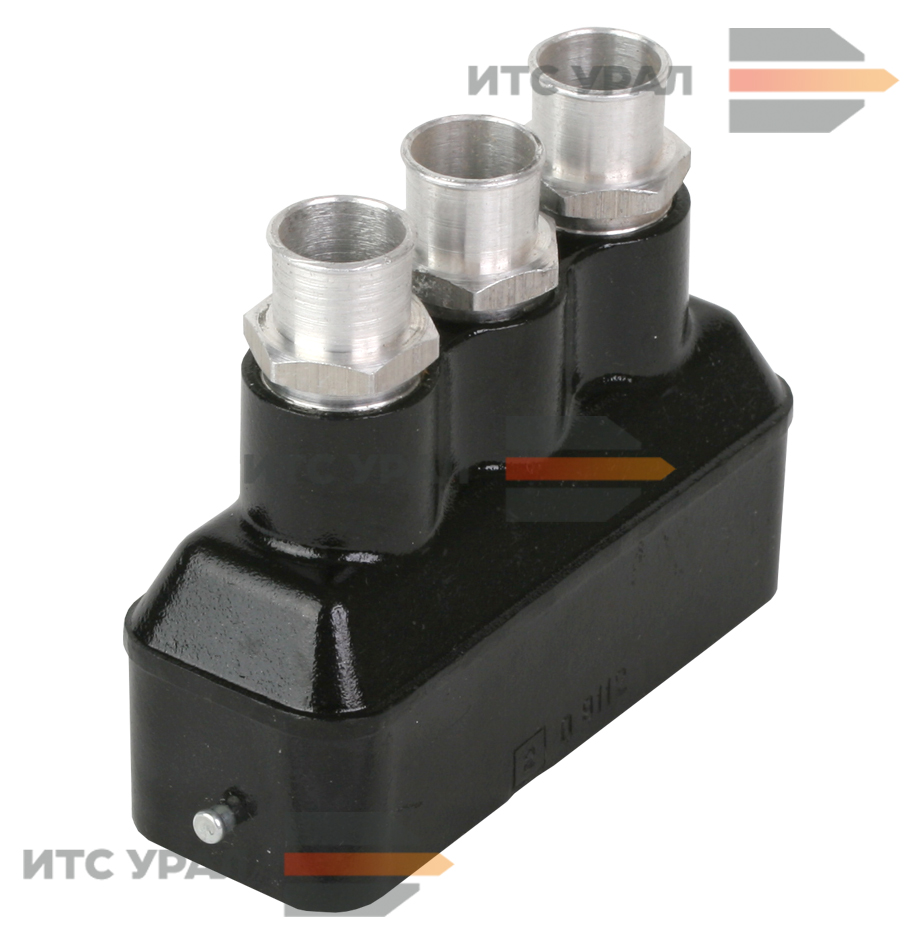 Корпус разъёма изготовлен из металла. Деталь используется для изготовления кабеля управления. Провода из корпуса могут выходить через три отверстия, форма разъёма - прямая.