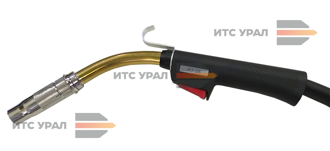 Горелка для полуавтомата RT-38 Flex для дуговой сварки в среде защитных газов МИГ/МАГ. RT-38 является одной из самых мощных горелок с естесственным газовым (воздушным) охлаждением. У горелки поворотный гусак. Горелка RT-38 применяется при сварке металла в машиностроении, производстве металлоконсктрукций, предприятиях ВПК, а также в климатических условиях, где проблематично применение систем жидкостного охлаждения. Стандартные длины горелки: 3, 4 и 5 метров. Длина горелки измеряется от торца разъёма до края сопла. Купить горелку для полуавтоматической сварки с газовым (воздушным) охлаждением, вы можете на сайте компании "ИТС-Урал", добавив товар в корзину, позвонив по телефону (343) 222-1-999 или отправив запрос на почту с картой вашего предприятия. Артикул изготовителя: 138.005.01
