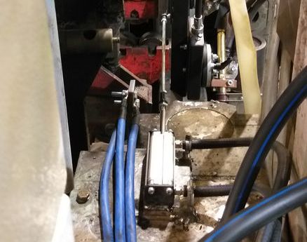 Установка пневмоцилиндра с тягой кронштейна токоподвода