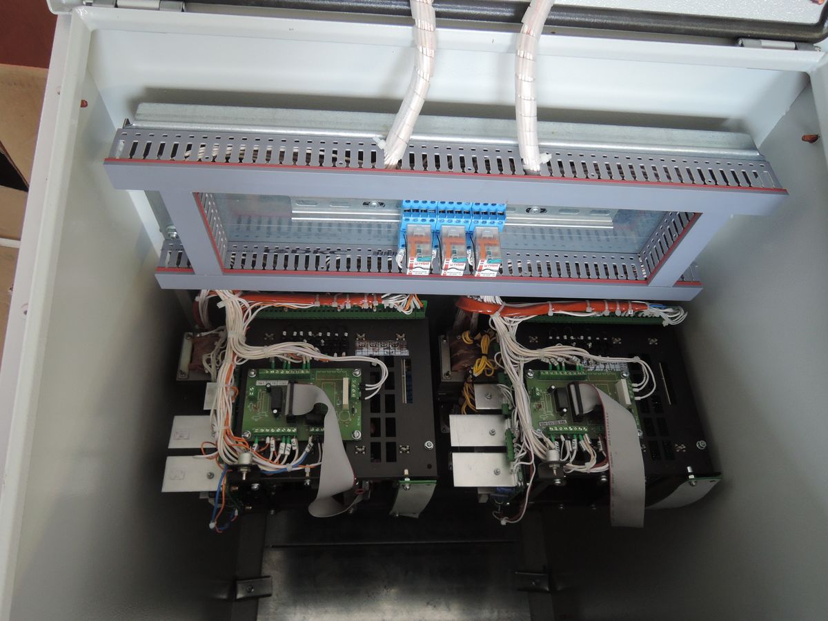 Установить приводы подачи проволоки от сварочных автоматов АДФ-1000, позволяющих работать проволоками диаметром до 4 мм. Собрать систему управления на базе блоков БУ-20, тем самым получив плавную регулировку скорости подачи проволоки и напряжения на дуге. Установить СОФ-1250.